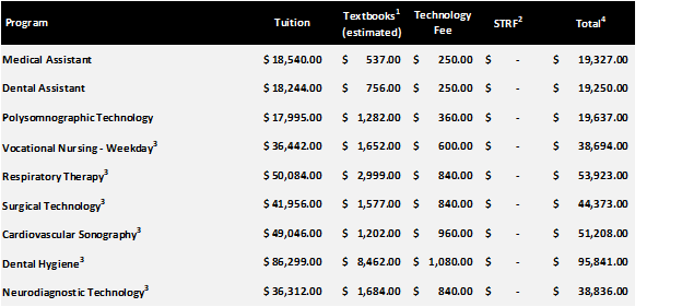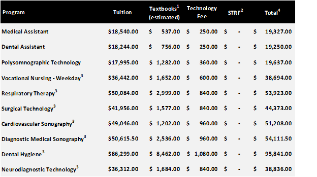 Tuition and direct expenses vary by program and are listed above. The indirect expenses below are based off a monthly average and may be prorated when academic years are shorter or longer. Indirect expenses reflect an average cost of the components that fall within the category. For additional cost of attendance budgets please contact the Financial Aid office.